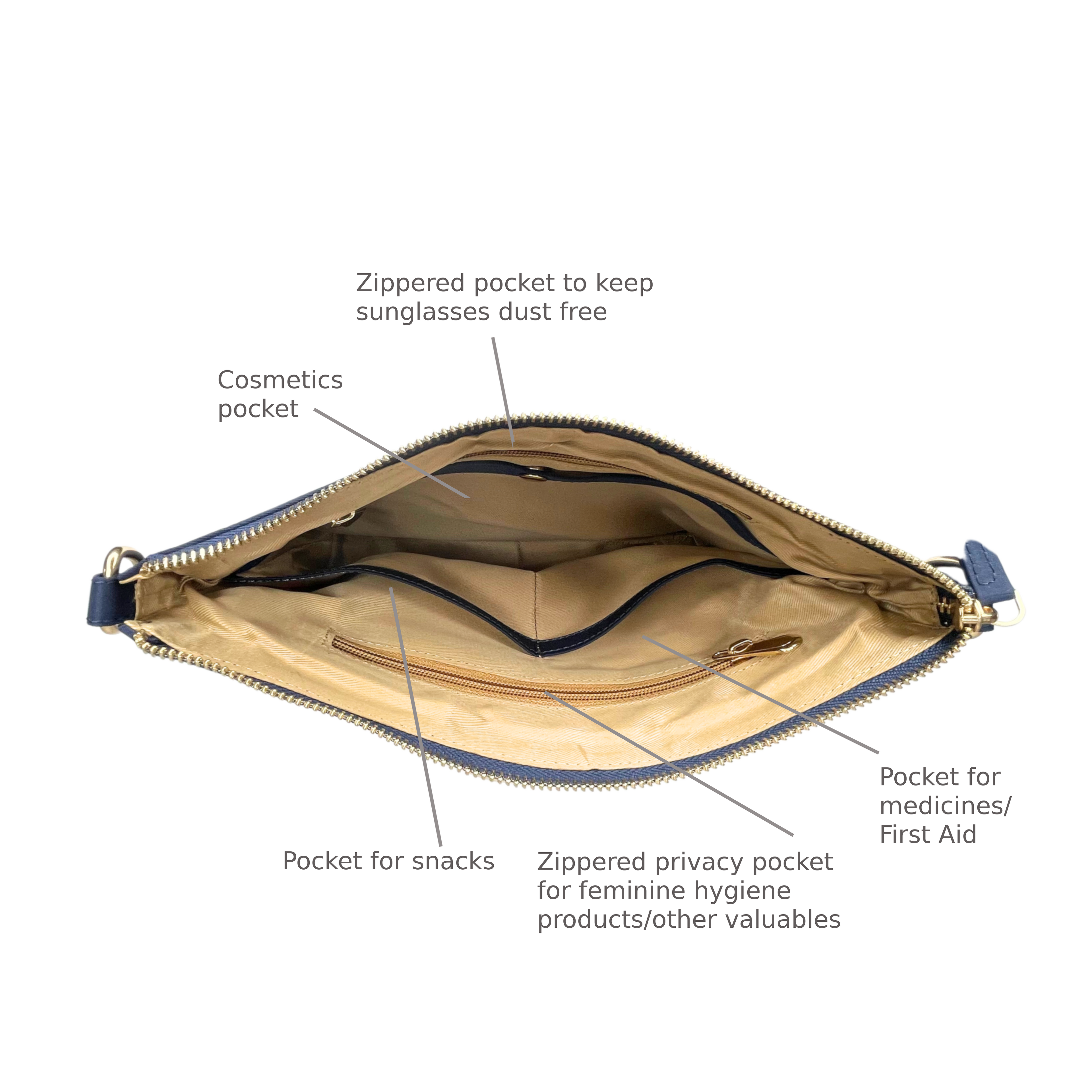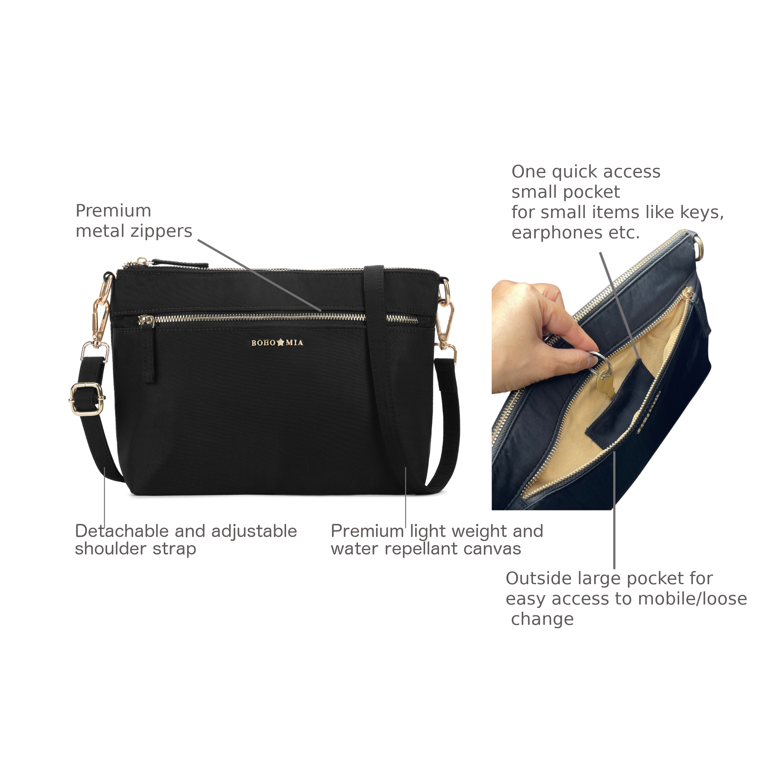 - Adjustable side strap to carry as a shoulder bag or crossbody bag.
