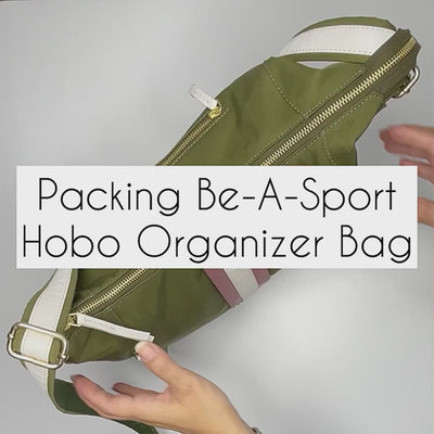 Introducing Be-A-Sport Hobo organizer Bag, your ultimate companion for all your adventures! Whether you're exploring a new city or simply navigating your daily routine, this sporty lightweight bag is designed to make your life easier and travels hassel-free. Carry it in style as a hobo bag or adjust to a longer strap to carry crossbody.