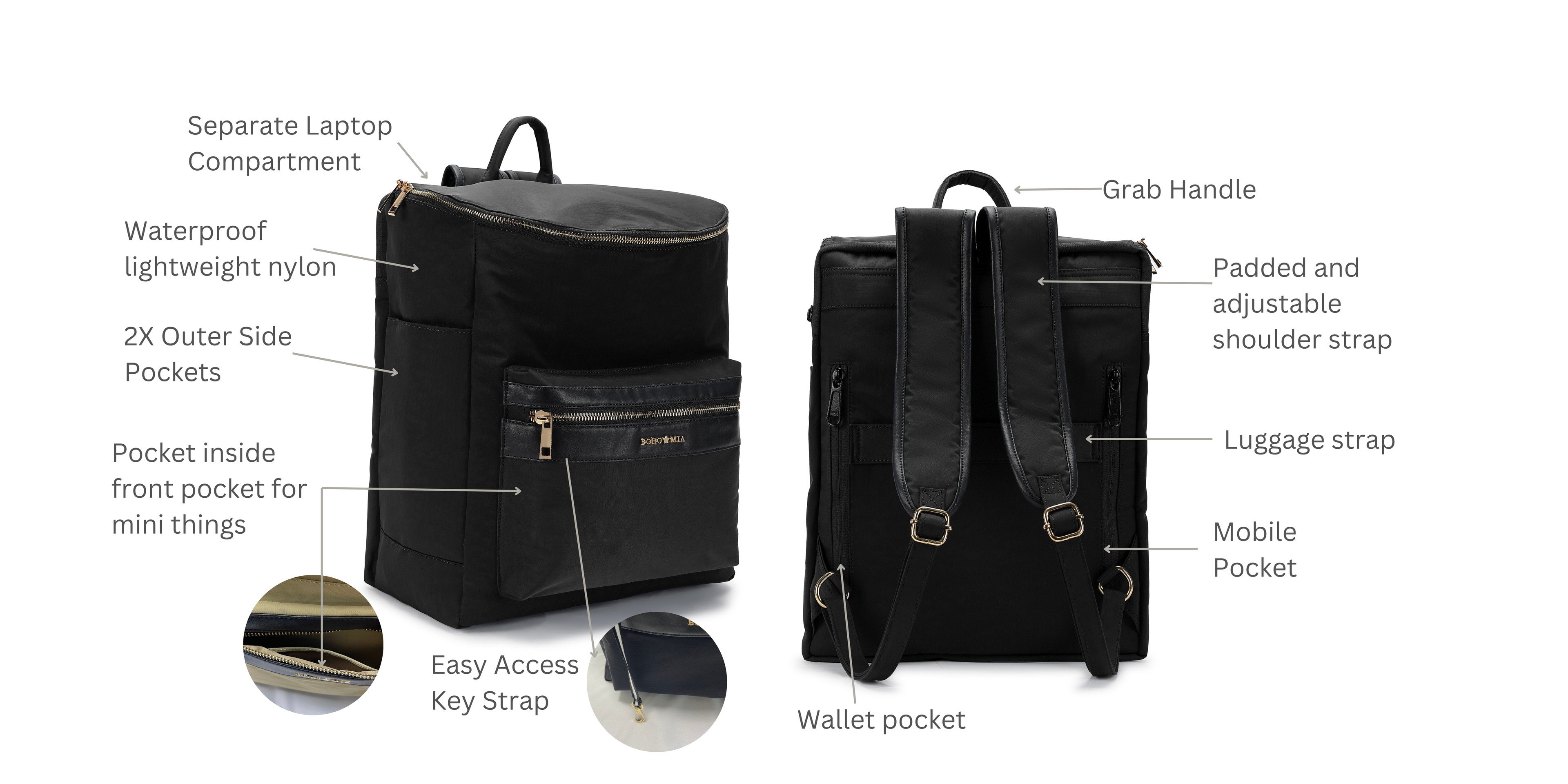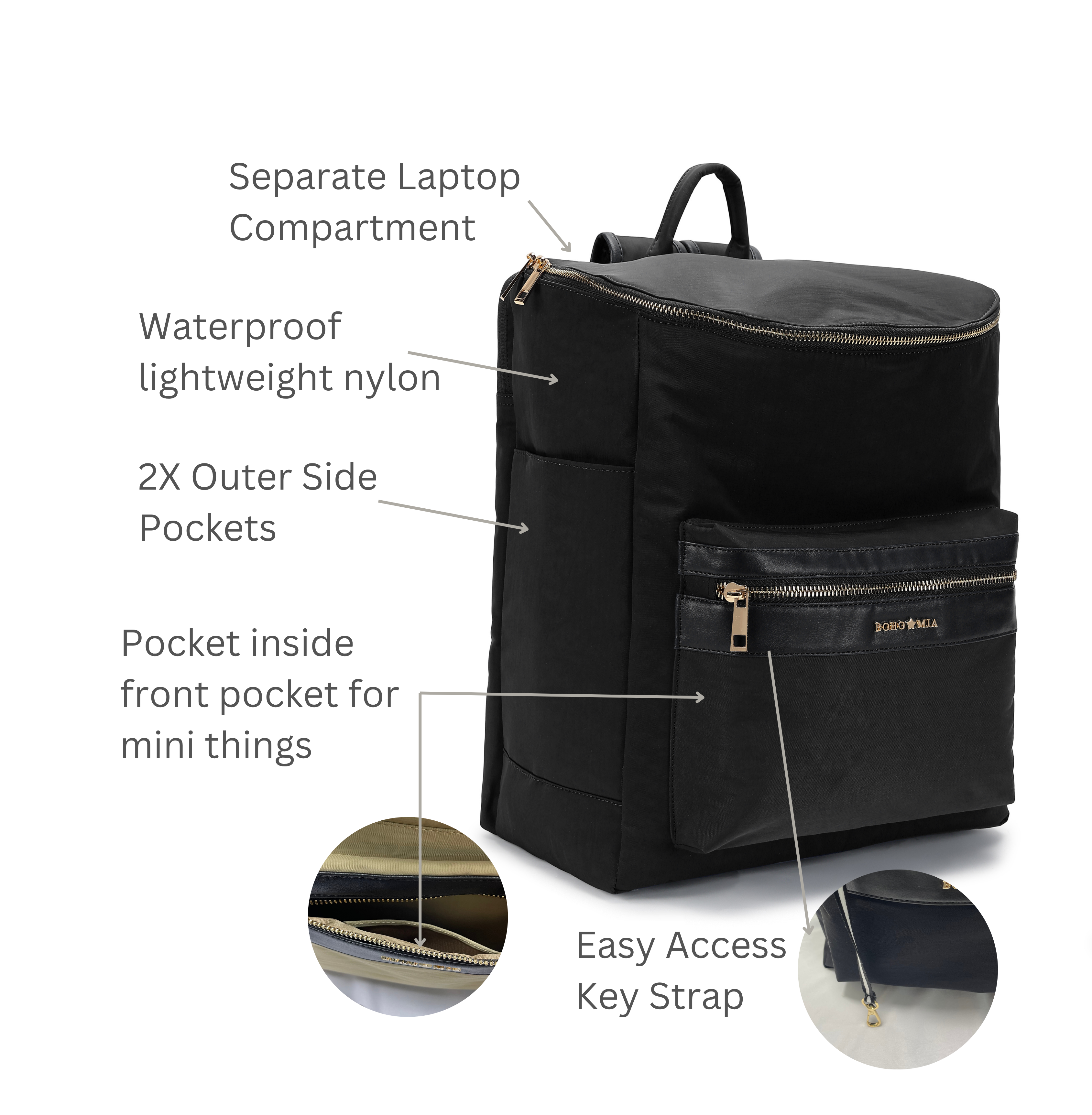 Bohomia Commuter Backpack Black (Lightweight Nylon)