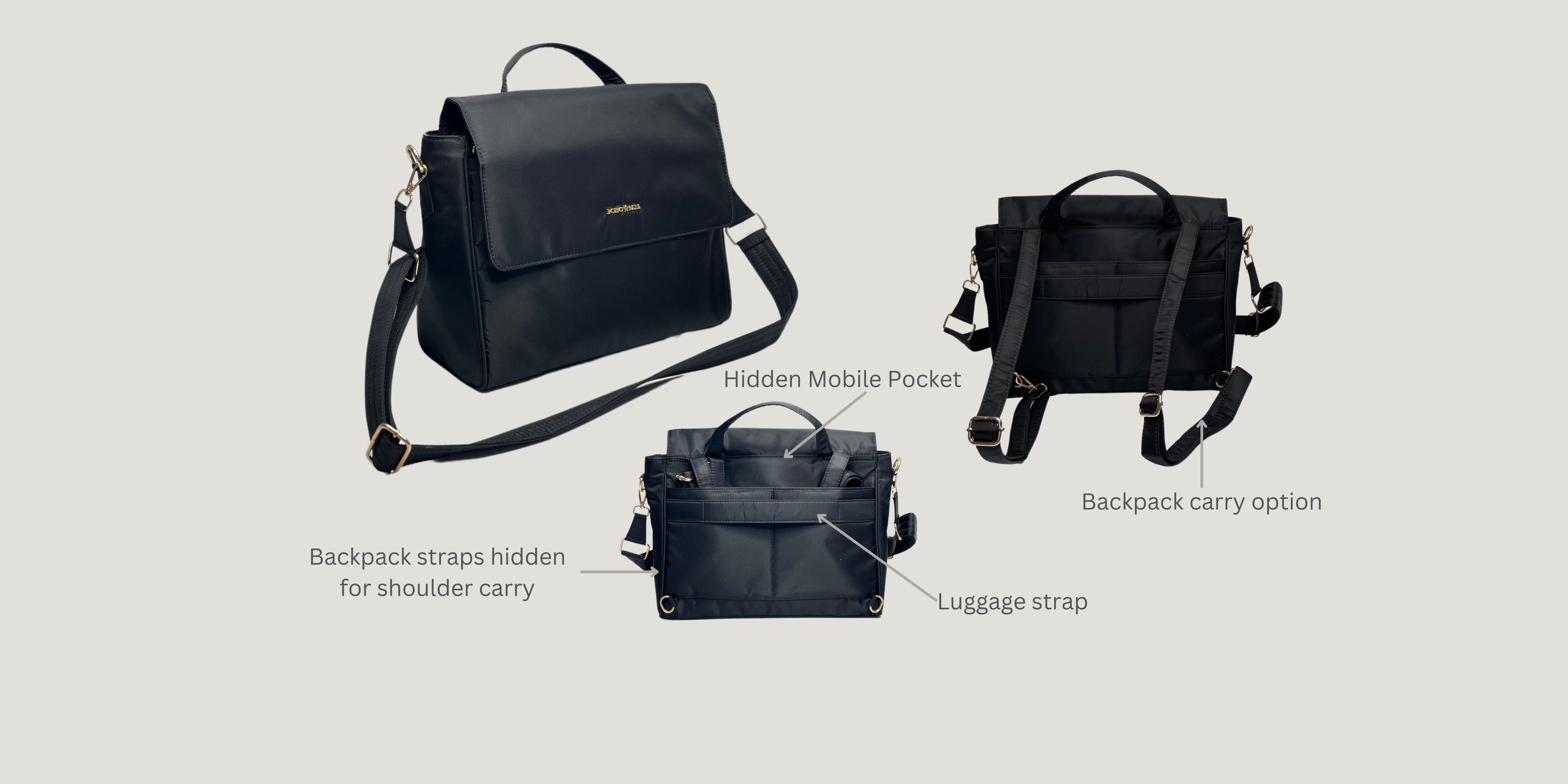- As a stylish compact organizer laptop/tablet bag (fits upto 13" laptops)