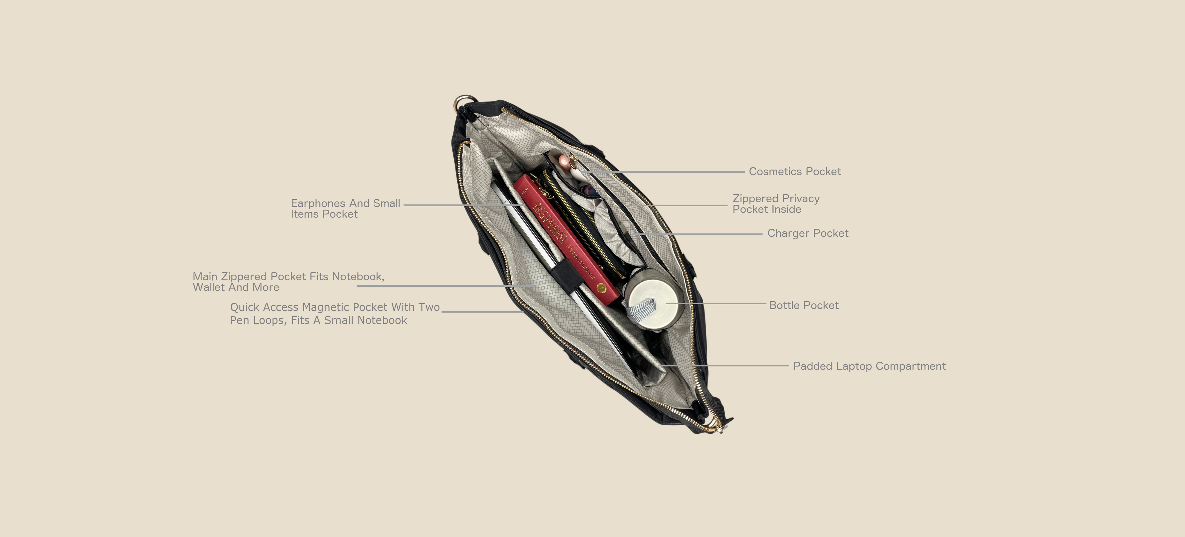 - Adjustable side strap to carry as a tote bag or sling bag.