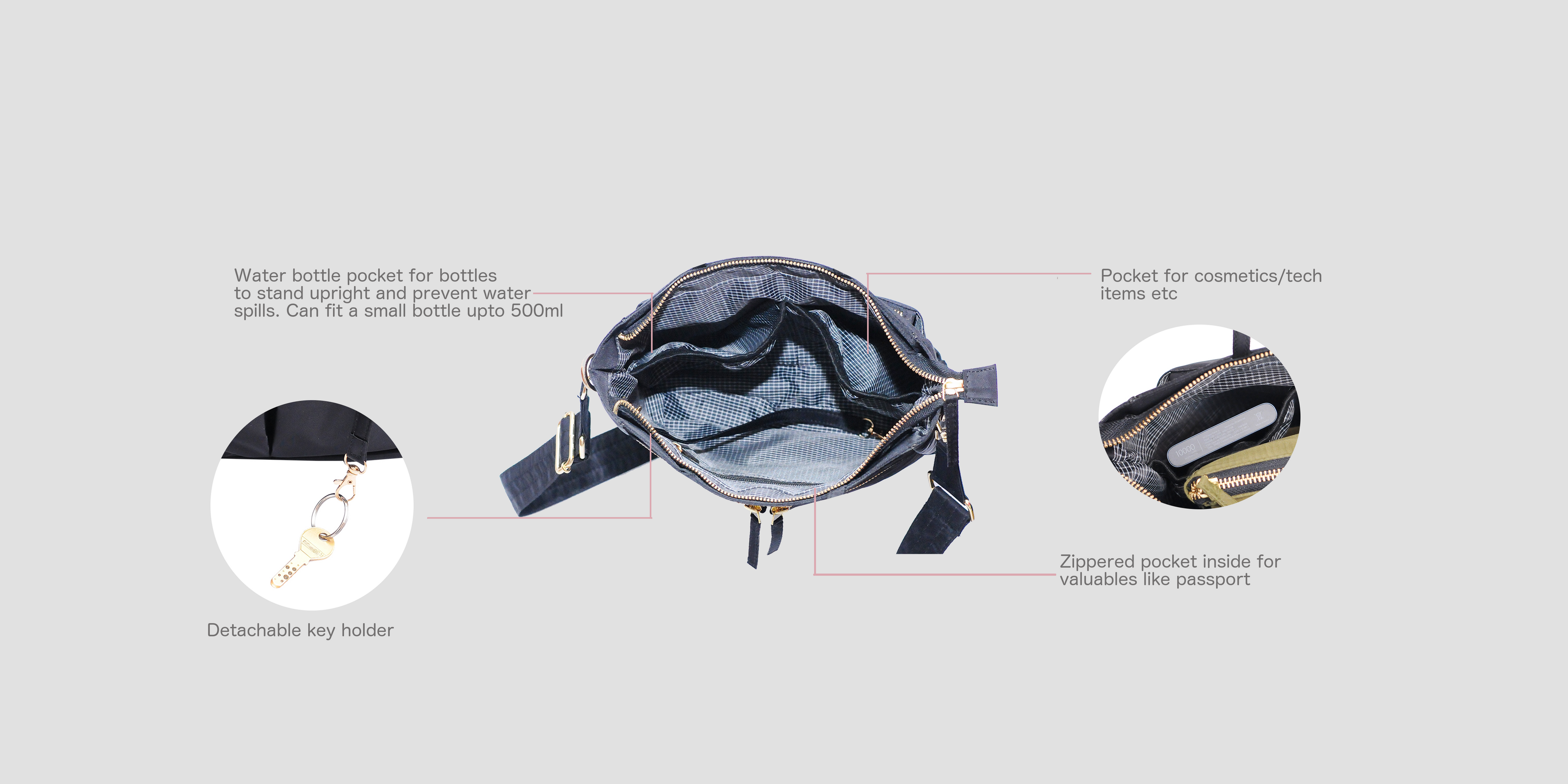 Travel in style with our Wanderer Sling bag. Look stylish and yet be assured that none of your travel necessities are being compromised. This crossbody bag is light, durable, easy to clean and suitable for carrying all your travel essentials. Can fit a small waterbottle, sunglasses, wallet, kindle, keys, mobile, charger, battery bank, pen, passport, a small notebook and makeup items. It can even fit an Ipad upto 10". Use this as a travel sling or your everyday crossbody. Its great as both