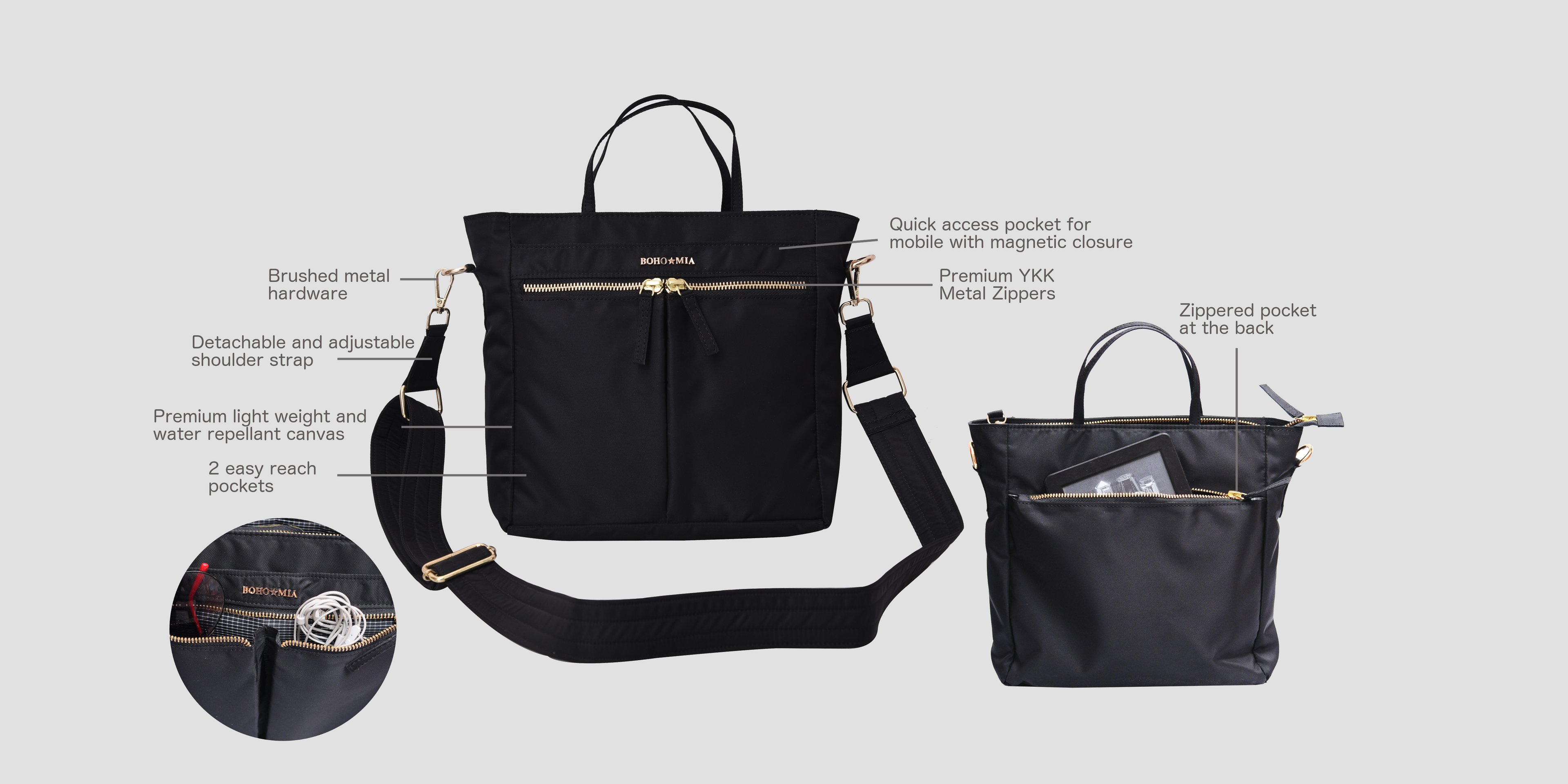 - Adjustable side strap to carry as a shoulder bag or crossbody bag.