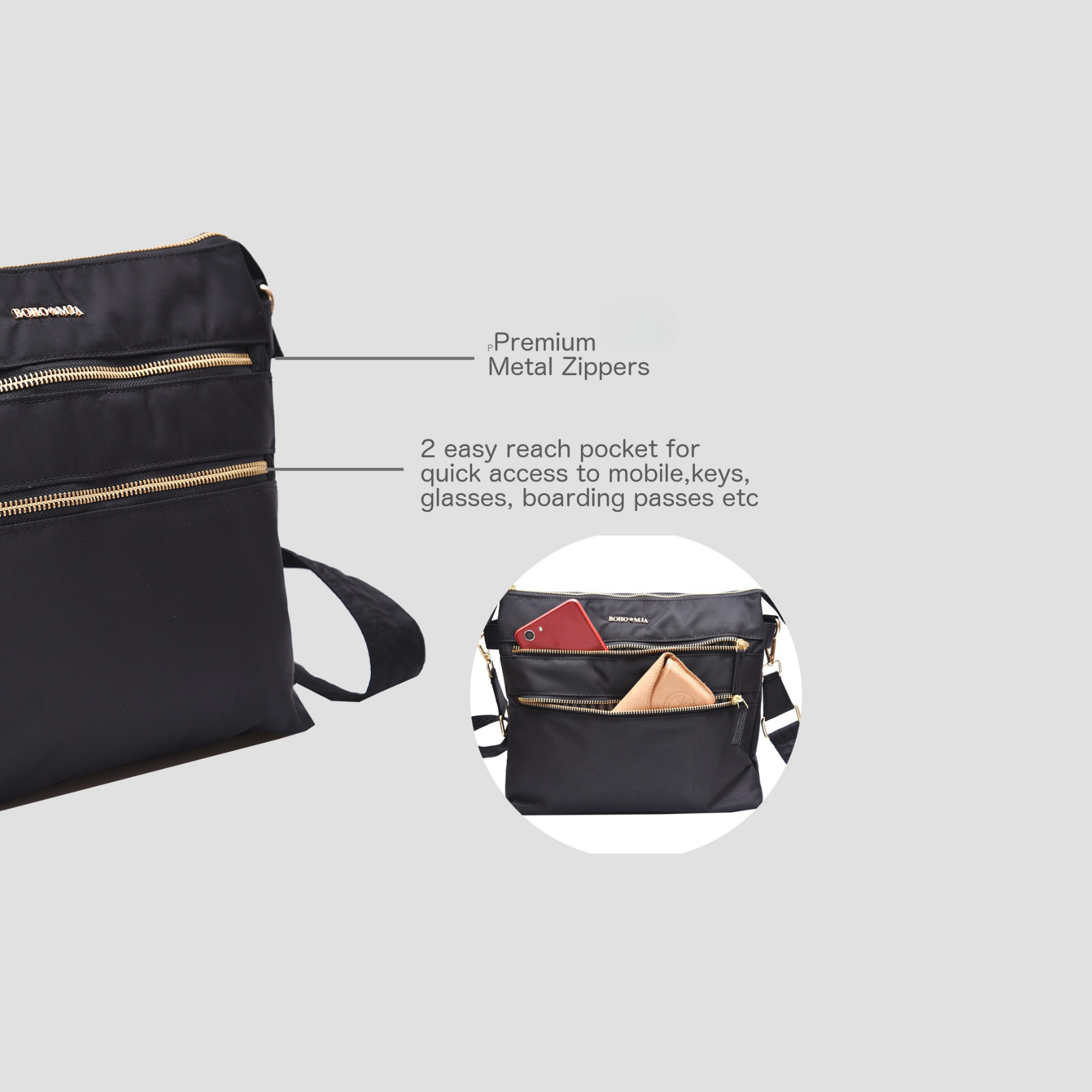 Tripper Crossbody/Sling Bag (Metal Zip) Black