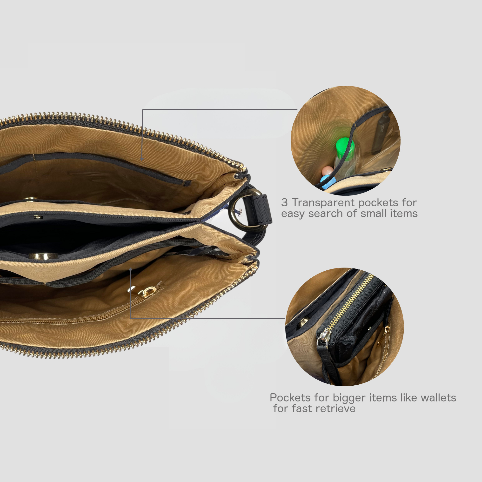 - 3 clear view pockets to find small things easily